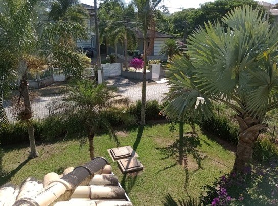 Quintal com pergolado e diversas árvores frutíferas